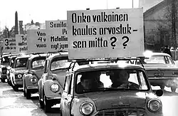Metal workers doing motorized strike in Hyvinkää, Finland in March 1971