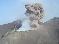 On 28 August 2019, at 10:16 local time, an explosive eruption sent a pyroclastic flow down the volcano's northern flank and into the sea, where it continued for several hundred meters before collapsing. The resulting ash column reached a height of 2,000 m (6,600 ft).[17]