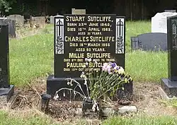 Sutcliffe is buried in Huyton Parish Church Cemetery (also known as St. Michael's) in the Metropolitan Borough of Knowsley, Merseyside, in North West England.