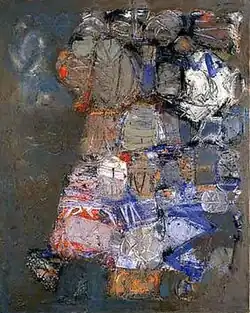 Hamburg Painting No. 2 was purchased by Liverpool's Walker Art Gallery and is one of a series entitled Hamburg in which surface and colour changes produce atmospheric energy. European artists (including Paolozzi) were also influencing Sutcliffe at the time.[58] The Walker Art Gallery has other works by Sutcliffe: Self-Portrait (in charcoal) and The Crucifixion.[59][60] Lennon later hung two of Sutcliffe's paintings in his house (Kenwood) in Weybridge, and McCartney had a Paolozzi sculpture in his Cavendish Avenue home.[61][62]
