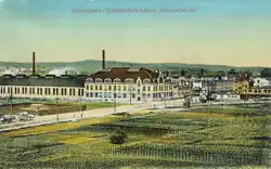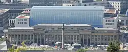 Stuttgart is purported to be the location of the automobile's invention by Karl Benz and then industrialized by Gottlieb Daimler and Wilhelm Maybach in a small workshop in Bad Cannstatt that would become Daimler-Motoren-Gesellschaft in 1887.[76] As a result, it is considered to be the starting point of the worldwide automotive industry and is sometimes referred to as the 'cradle of the automobile',[12] and today Mercedes-Benz and Porsche both have their headquarters in Stuttgart, as well as automotive parts giants Bosch and Mahle. The year prior, Robert Bosch opened his first "Workshop for Precision Mechanics and Electrical Engineering" in Stuttgart. In 1907, the International Socialist Congress was held in Stuttgart was attended by about 60,000 people.[77] In 1912, VfB Stuttgart was founded.[72] Two years later, the current iteration of the Stuttgart Hauptbahnhof was completed according to plan by Paul Bonatz from 1914 to 1927.[78]