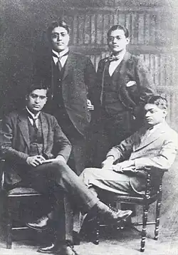Subhas Bose (standing, right) with friends in England, 1920