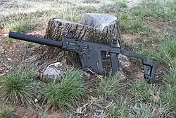 During the Apartheid era of South Africa and the Rhodesian Bush War/South African Border War, a semi-automatic only pistol calibre carbine based on submachine guns existed for civilian personal protection as Land Defence Pistols (LDP).[49] Known examples were the Bell & White 84,[50] BHS Rhogun, Cobra Mk1,[51] GM-16, Kommando LDP,[52] Northwood R-76,[53] Paramax, Sanna 77 and TS III.