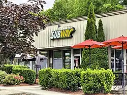 Subway IP LLC,[7] trading as Subway, is an American multinational fast food restaurant franchise that specializes in submarine sandwiches (subs) and wraps. It was founded by Fred DeLuca and financed by Peter Buck in 1965 as Pete's Super Submarine Sandwiches[8] in Bridgeport, Connecticut. After several name changes, it was renamed Subway in 1972, and a franchise operation began in 1974 with a second restaurant in Wallingford, Connecticut.[9]
