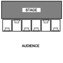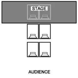 | Small system: Two pole-mounted mid/high frequency PA speaker cabinets and two small subwoofer cabinets with 15- or 18-inch subwoofers (Note: this would be used in club where jazz, acoustic music, country music or soft rock is played) | Small club with capacity for up to 300 people |