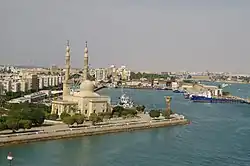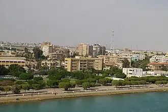 Suez is a seaport city in north-eastern Egypt, located on the north coast of the Gulf of Suez on the Red Sea, near the southern terminus of the Suez Canal.[4][5] The city is the capital and largest city of the Suez Governorate. The modern city of Suez is a successor of the ancient Egyptian city of Clysma, a major Red Sea port and a center of monasticism.[6]