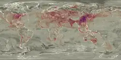 On regional and global scale, air pollution can affect the water cycle, in a manner similar to some natural processes. One example is the impact of Sahara dust on hurricane formation: air laden with sand and mineral particles moves over the Atlantic Ocean, where they block some of the sunlight from reaching the water surface, slightly cooling it and dampening the development of hurricanes.[43] Likewise, it has been suggested since the early 2000s that since aerosols decrease solar radiation over the ocean and hence reduce evaporation from it, they would be "spinning down the hydrological cycle of the planet."[44][45]