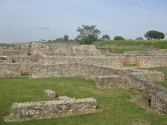 The next year, 89 BC, Sulla served as legate under the consul Lucius Porcius Cato.[64] But after Cato's death in battle with the Marsi,[65] Sulla was prorogued pro consule and placed in supreme command of the southern theatre. He brought Pompeii under siege. After one of the other legates was killed by his men, Sulla refused to discipline them except by issuing a proclamation imploring them to show more courage against the enemy. While besieging Pompeii, an Italian relief force came under Lucius Cluentius, which Sulla defeated and forced into flight towards Nola. Killing Cluentius before the city's walls, Sulla then besieged the town and for his efforts was awarded a grass crown, the highest Roman military honour.[64] Pompeii was taken some time during the year, along with Stabiae and Aeclanum; with the capture of Aeclanum, Sulla forced the Hirpini to surrender. He then attacked the Samnites and routed one of their armies near Aesernia before capturing the new Italian capital at Bovianum Undecimanorum.[66] All of these victories would have been won before the consular elections in October 89.[67]