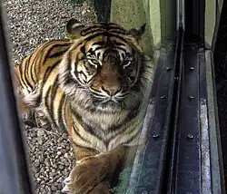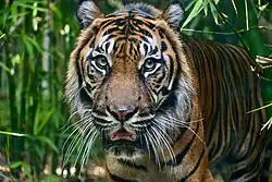 The Sumatran tiger is a population of Panthera tigris sondaica on the Indonesian island of Sumatra.[1][2] It is the only surviving tiger population in the Sunda Islands, as the other Bali and Javan tigers went extinct during the 20th century.[3]