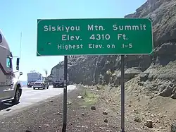 Summit may also refer to the highest point along a line, trail, or route. In many parts of the Western United States, the term summit is used for the highest point along a road, highway, or railroad, more commonly referred to as a pass. For example, the highest point along Interstate 80 in California is referred to as Donner Summit and the highest point on Interstate 5 is Siskiyou Mountain Summit. This can lead to confusion as to whether a labeled "summit" is a pass or a peak.
