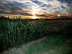 A sun dog (or sundog) or mock sun, also called a parhelion[1] (plural parhelia) in atmospheric science, is an atmospheric optical phenomenon that consists of a bright spot to one or both sides of the Sun. Two sun dogs often flank the Sun within a 22° halo.
