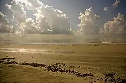 Biotic factors here play a significant role in physical coastal evolution, and for wildlife a variety of habitats have developed which include beaches, estuaries, permanent and semi-permanent swamps, tidal flats, tidal creeks, coastal dunes, back dunes and levees. The mangrove vegetation itself assists in the formation of new landmass and the intertidal vegetation plays a significant role in swamp morphology. The activities of mangrove fauna in the intertidal mudflats develop micromorphological features that trap and hold sediments to create a substratum for mangrove seeds. The morphology and evolution of the eolian dunes is controlled by an abundance of xerophytic and halophytic plants. Creepers, grasses and sedges stabilise sand dunes and uncompacted sediments. The Sunderbans mudflats (Banerjee, 1998) are found at the estuary and on the deltaic islands where low velocity of river and tidal current occurs. The flats are exposed in low tides and submerged in high tides, thus being changed morphologically even in one tidal cycle. The tides are so large that approximately one third of the land disappears and reappears every day.[24] The interior parts of the mudflats serve as a perfect home for mangroves.