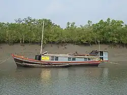 The history of human settlement in the Sundarbans area can be traced back to Mauryan era (4th-2nd century BCE).[13] A ruin of an abandoned city was found in the Baghmara Forest Block that is attributed to Chand Sadagar, a pre-Mauryan semi-historical figure in Bengali folklore.[14] Archaeological excavation at Kapilmuni, Paikgacha Upazilla, north of the Sundarbans in Bangladesh, revealed ruins of urban settlement dating back to the early middle ages.[15] During the Mughal period, forest tracts were leased out by the local rulers for establishing settlements.[14] In 1757, The British East India Company obtained proprietary rights over Sundarbans from the Mughal Emperor Alamgir II and completed mapping the area in 1764. However, systematic forest management started a century later. The first Forest Management Division to have jurisdiction over the Sundarbans was established in 1869. In 1875 a large portion of the mangrove forests was declared as reserved forests under the Indian Forest Act of 1865 (Act VIII of 1865). The remaining portions of the forests were declared a reserve forest the following year and the forest, which was so far administered by the civil administration district, was placed under the control of the Forest Department. A Forest Division, which is the basic forest management and administration unit, was created in 1879 with the headquarters in today Khulna, Bangladesh. The first management plan was written for the period 1893–1898.[16][17]