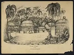 Village in a clearing of the Sundarbans. Drawing by Frederic Peter Layard after an original sketch of 1839