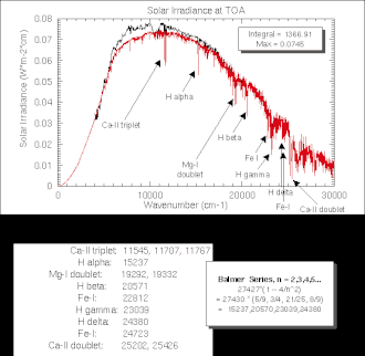 - Detailed spectrum of the Sun at Astronomy Picture of the Day.