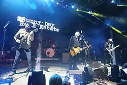 In 1997, they regrouped long enough to record two more studio albums and a live album, but ultimately disbanded once again in 2001.[2] The band reunited again in 2009. Bassist Nate Mendel, who chose to remain with Foo Fighters during the previous reunion in 1997, took part in this reunion.[3] In a 2013 interview with MusicRadar, Mendel said Sunny Day Real Estate was inactive. According to Mendel, the band attempted to record a full-length album after the end of their reunion tour, but the sessions "just fell apart".[4] In 2014 the band released one song from those sessions, "Lipton Witch," on a split 7-inch vinyl with Circa Survive on Record Store Day.[5]
