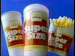 Six weeks after the film's debut, McDonald's discontinued its supersize portions, although they claimed the decision had nothing to do with the film itself.[31] In the United Kingdom, McDonald's publicized a website which included a response to and criticisms of the film.[32] In theaters in the UK, the company placed a brief ad in the film's trailers, pointing to the URL and stating, "See what we disagree with. See what we agree with."