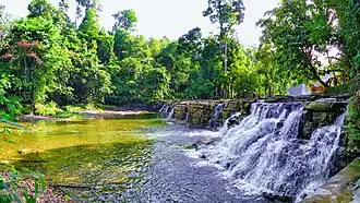 Bislig's main tourist attraction is the Tinuy-an Falls,[26] known as the little "Niagara Falls of the Philippines". It is a white water curtain that flows in three levels about 55 metres (180 ft) high and 95 metres (312 ft) wide.[27] Its unique natural formation once appeared in the International Travel Magazine. It is also known as the widest waterfall in the Philippines.
