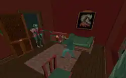 1982 saw the release of another early horror game, Bandai's Terror House,[28] based on traditional Japanese horror,[29] released as a Bandai LCD Solarpower handheld game. It was a solar-powered game with two LCD panels on top of each other to enable impressive scene changes and early pseudo-3D effects.[30] The amount of ambient light the game received also had an effect on the gaming experience.[31] Another early example of a horror game released that year was Sega's arcade game Monster Bash, which introduced classic horror-movie monsters, including the likes of Dracula, Frankenstein's monster, and werewolves, helping to lay the foundations for future survival horror games.[32] Its 1986 remake Ghost House had gameplay specifically designed around the horror theme, featuring haunted house stages full of traps and secrets, and enemies that were fast, powerful, and intimidating, forcing players to learn the intricacies of the house and rely on their wits.[11] Another game that has been cited as one of the first horror-themed games is Quicksilva's 1983 maze game Ant Attack.[33]