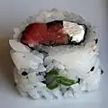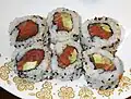 | Alaskan roll | A variant of the California roll with smoked salmon on the inside or layered on the outside.[79] | |