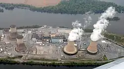 Another environmental concern is radioactivity released during the 1979 Three Mile Island accident.[37] However, extensive radionuclide studies over a 25-year period from 1979 through 2003, confirm that the Three Mile Island accident has not resulted in any harmful radiation effects.[38] The areas in and along a 262-km length of the Susquehanna River in Pennsylvania were monitored for the presence of radioactive materials. This study began two months after the 1979 Three Mile Island (TMI) partial reactor meltdown; it spanned the next 25 years. Monitoring points included stations at the PPL Susquehanna and TMI nuclear power plants. Monthly gamma measurements documented concentrations of radionuclides from natural and anthropogenic sources. During this study, various series of gamma-emitting radionuclide concentration measurements were made in many general categories of animals, plants, and other inorganic matter, both within and near the river. Sampling began in 1979 before the first start-up of the PPL Susquehanna power plant. Although all species were not continuously monitored for the entire period, an extensive database was compiled. In May 1986, ongoing measurements from several monitoring stations along the river near Three Mile Island, Peach Bottom and Calvert Cliffs detected iodine-131 beta particles attributable to fallout from the Chernobyl nuclear accident.[39] The remaining reactor at Three Mile Island Nuclear Generating Station was shut down in 2019.[40]