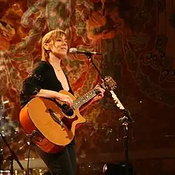 While majoring in English literature at Barnard College,[12] she performed in small venues in Greenwich Village, where she was a regular contributor to Jack Hardy's Monday night songwriters' group at the Cornelia Street Cafe and had some of her first songs published on Fast Folk anthology albums.[13] In 1984, she received a major label recording contract, making her one of the first Fast Folk artists to break out on a major label.