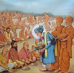 Swaminarayan distributing food among the needy
