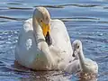 - ^ Scott, D. K. (1980). "Functional aspects of the pair bond in winter in Bewick's swans (Cygnus columbianus bewickii)". Behavioral Ecology and Sociobiology. 7 (4): 323–327. Bibcode:1980BEcoS...7..323S. doi:10.1007/BF00300673. S2CID 32804332.