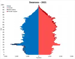 The principal area is the second most populous local authority area in Wales, with an estimated population of 251,304 in 2024.[2] Swansea, along with Neath and Port Talbot, forms the Swansea urban area, with a population of 300,352 in 2011. It is also part of the Swansea Bay City Region.