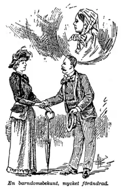 A more recent American immigrant, Ernst Skarstedt, who visited Sweden in 1885, received the same galling impression of upper-class arrogance and anti-Americanism. The laboring classes, in their turn, appeared to him coarse and degraded, drinking heavily in public, speaking in a stream of curses, making obscene jokes in front of women and children. Skarstedt felt surrounded by "arrogance on one side and obsequiousness on the other, a manifest scorn for menial labor, a desire to appear to be more than one was". This traveller too was incessantly hearing American civilization and culture denigrated from the depths of upper-class Swedish prejudice: "If I, in all modesty, told something about America, it could happen that in reply I was informed that this could not possibly be so or that the matter was better understood in Sweden."[55]
