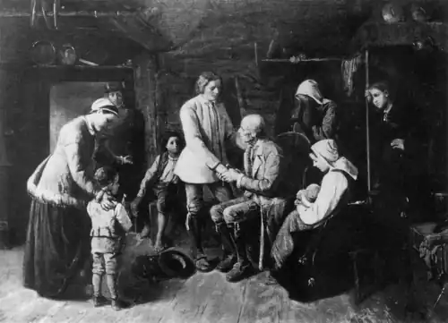 The Emigrants by S. V. Helander (1839–1901): a young farmer bids a sober farewell to friends and relatives.