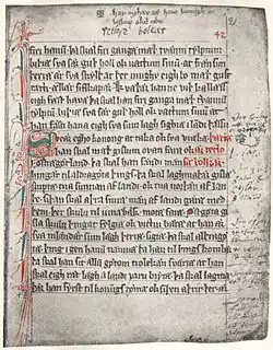 Old Swedish (Swedish: fornsvenska) is the term used for the medieval Swedish language. The start date is usually set to 1225 since this is the year that Västgötalagen ("the Västgöta Law") is believed to have been compiled for the first time.[8] It is among the most important documents of the period written in Latin script and the oldest Swedish law codes. Old Swedish is divided into äldre fornsvenska (1225–1375) and yngre fornsvenska (1375–1526), "older" and "younger" Old Swedish.[9] Important outside influences during this time came with the firm establishment of the Christian church and various monastic orders, introducing many Greek and Latin loanwords. With the rise of Hanseatic power in the late 13th and early 14th century, Middle Low German became very influential. The Hanseatic league provided Swedish commerce and administration with a large number of Low German-speaking immigrants. Many became quite influential members of Swedish medieval society, and brought terms from their native languages into the vocabulary. Besides a great number of loanwords for such areas as warfare, trade and administration, general grammatical suffixes and even conjunctions were imported. The League also brought a certain measure of influence from Danish (at the time Swedish and Danish were much more similar than today).[10]
