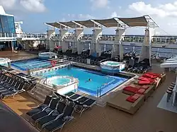 Cruise ships often have swimming pools, water slides and other water features. The pools use filtered and chlorinated sea water. The Titanic had a saltwater swimming pool.