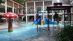 Wading or paddling pools are shallow bodies of water intended for use by small children, usually in parks. Concrete wading pools come in many shapes, traditionally rectangle, square or circle. Some are filled and drained daily due to lack of a filter system. Staff chlorinate the water to ensure health and safety standards.