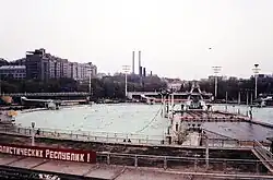 One of the largest swimming pools ever built was reputedly created in Moscow after the Palace of Soviets remained uncompleted. The foundations of the palace were converted into the Moskva Pool open-air swimming pool after the process of de-Stalinisation.[24] However, after the fall of communism, Christ the Saviour Cathedral was re-built on the site between 1995 and 2000; the cathedral had originally been located there.