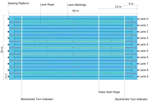 - See: #Dimensions (above) and Swimming (sport)#Competition pools