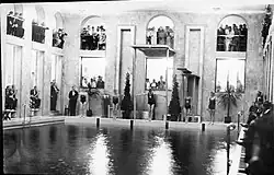 The Fleishhacker Pool in San Francisco was the largest heated outdoor swimming pool in the United States. Opened on 23 April 1925, it measured 1,000 by 150 ft (300 by 50 m) and was so large that the lifeguards required kayaks for patrol. It was closed in 1971 due to low patronage.[22]