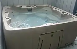 Commercial spas are generally made of concrete, with a mosaic tiled interior. In the early 2000s, with the innovation of the pre-form composite method where mosaic tiles are bonded to the shell this enables commercial spas to be completely factory manufactured to specification and delivered in one piece.[39] Hot tubs are typically made somewhat like a wine barrel with straight sides, from wood such as Californian redwood held in place by metal hoops. Immersion of the head is not recommended in spas or hot tubs due to a potential risk of underwater entrapment from the pump suction forces. However, commercial installations in many countries must comply with various safety standards which reduce this risk considerably.