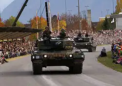 In 2003, the reform "Army XXI" replaced the previous model "Army 95" and was adopted by popular vote, reducing manpower from 400,000 to about 200,000 personnel, with 120,000 receiving periodic military training and 80,000 reservists who have completed their total military training requirements.[6] A further reform effective in 2018 heralded the reduction of forces to 100,000 members.