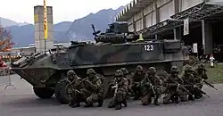 Infantry squad and Mowag Piranha during presentation