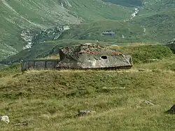 Camouflaged cannons and fortifications near Furka Pass in the Gotthard region