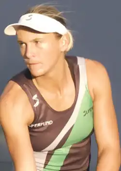 In February 2007, she finally won her first WTA Tour title ten years after turning professional, beating Vasilisa Bardina in the first round to avenge her semifinal loss to her at Hobart, Anastasia Rodionova, Martina Suchá, Peng Shuai and topping it off with a victory over Gisela Dulko in the final, saving three match points en route to victory.[4][5]