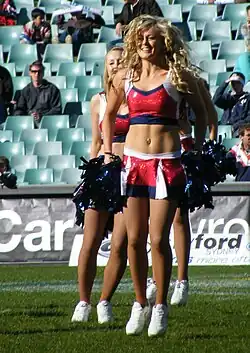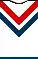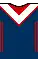 Red, white and blue have been the colours of every jersey design in the club's history;[62] however, the jersey design has undergone several alterations. During World War II, the design of the jersey was modified because the dye used to colour jerseys was needed for the war effort.[63] This saw Eastern Suburbs playing in different colours and an altered design. Instead of using the traditional hoops, the side used a sky-blue based jersey and a red and white V-strip around the collar. This is the only noted time in the club's history where the traditional deep blue, red and white combination was absent from the jersey. After the war, the V-strip design reverted to the original blue that had been present in the original jerseys, and the single red and white stripes around the shirt's chest were incorporated with a single white stripe surrounded by a red stripe on either side. This jersey appeared in the 1950s and remains the team's base design.[17]