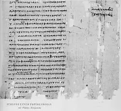 Papyrus Oxyrhynchus 843, a 2nd century papyrus roll containing the Symposium