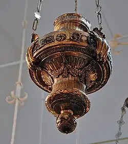 Other traditional features include a continually lit lamp or lantern, usually electric in contemporary synagogues, called the ner tamid (נר תמיד‎), the "Eternal Light", used as a way to honor the Divine Presence.[51]