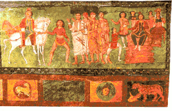 • Decoration: The mosaic floor and other architectural elements or artifacts are sometimes decorated with typical symbols.[33]