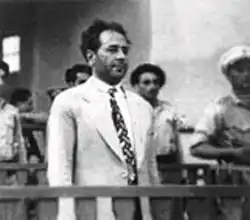 Following a violent crackdown by government forces, Saadeh travelled to Damascus to meet with Husni al-Za'im in an attempt to obtain his support for the revolution. A decision was taken by King Farouk, Riad el Solh and Husni al-Za'im to eliminate Antoun Saadeh, under the patronage of British Intelligence and the Mossad.[41] As a result, Al-Za'im handed Saadeh over to Lebanese authorities, who had him executed on 8 July 1949. It was the shortest and most secretive trial given to a political offender.[42][43]