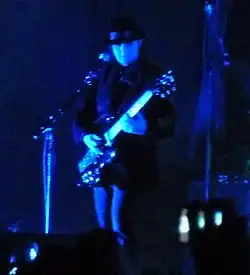 Stephen Thomas Erlewine of AllMusic stated "Like many late-'90s metal bands System of a Down struck a balance between '80s underground thrash metal and metallic early-'90s alternative rockers like Jane's Addiction".[95] System of a Down's music is influenced by elements of numerous styles, including alternative rock,[96] art rock, classic rock,[8] gothic rock,[97] hip hop,[98] jazz,[8] various genres of metal including thrash metal and even Norwegian black metal,[96][8] and Middle Eastern music.[99] System of a Down's music has variously been termed alternative metal,[95][100][101][102][103] nu metal,[104][105][106][107][108] hard rock,[109][110][111] progressive metal,[112][113][114] heavy metal,[95][115] thrash metal,[116][117][118] art rock,[119][120] and avant-garde metal.[121][119] Malakian has stated that "We don't belong to any one scene"[122] and that "I don't like the nu-metal drop-A 7-string guitar sound; it is not my thing, at least not yet."[123] In interview with Mike Lancaster, he also said, "People always seem to feel the need to put us into a category, but we just don't fit into any category."[124] According to Tankian, "As far as arrangement and everything, [our music] is pretty much pop. To me, System of a Down isn't a progressive band. [...] But it's not a typical pop project, obviously. We definitely pay attention to the music to make sure that it's not something someone's heard before."[125] The band's songs often employ droning notes, modulations, modes, and varying time signatures. According to Reverb.com: "These characteristics make SoaD one of the most progressive bands associated with nu metal."[126] Malakian once described their music "as if Slayer and the Beatles had a baby."[127]