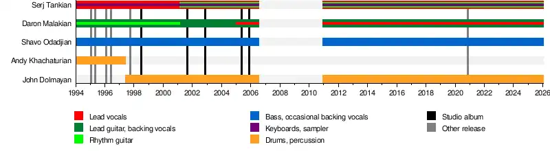 - Serj Tankian – lead vocals, keyboards, sampler (1994–2006, 2010–present), rhythm guitar (2001–2006, 2010–present)