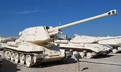 Replacing many light and medium tanks in Red Army service, it was the most-produced tank of the war, as well as the second most-produced tank of all time (after its successor, the T-54/T-55 series).[10] With 44,900 lost or damaged during the war, it also suffered the most tank losses ever.[11] Its development led directly to the T-44, then the T-54 and T-55 series of tanks, which in turn evolved into the later T-62, that form the armoured core of many modern armies. T-34 variants were widely exported after World War II, and as recently as 2023 more than 80 T-34s were still in service.[12]